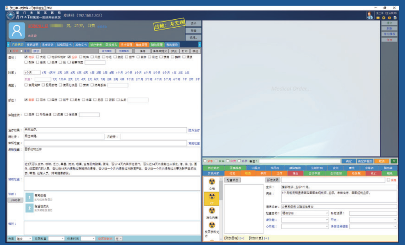 門診電子病歷系統(tǒng)采用一體化設(shè)計(jì),從刷卡、掛號(hào)到寫(xiě)病歷、開(kāi)醫(yī)囑都在一套系統(tǒng)中完成,門診病歷具有初診、復(fù)診和續(xù)診模式,支持CA電子簽名和時(shí)間戳,提交后生成具有可靠電子簽名的病歷文檔,滿足無(wú)紙化需要。